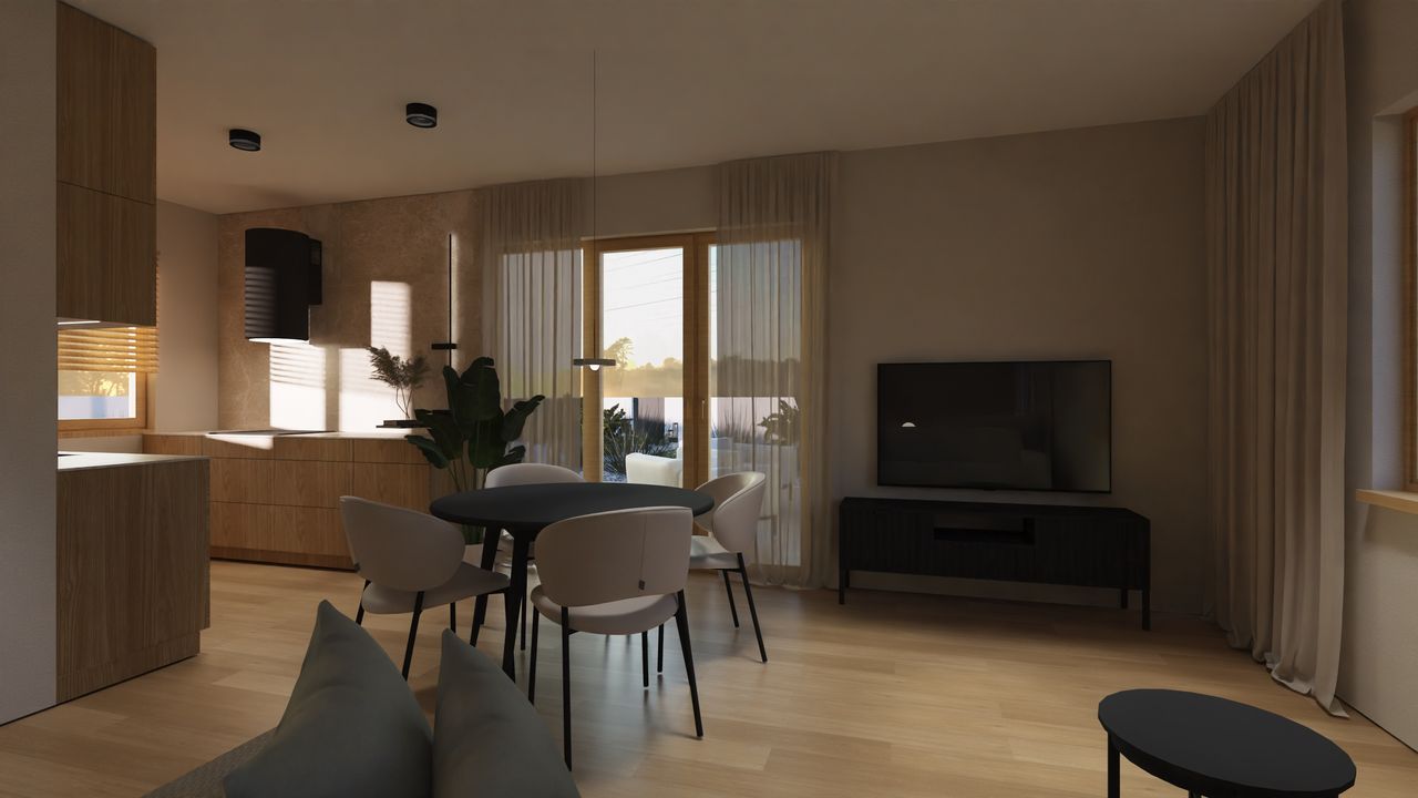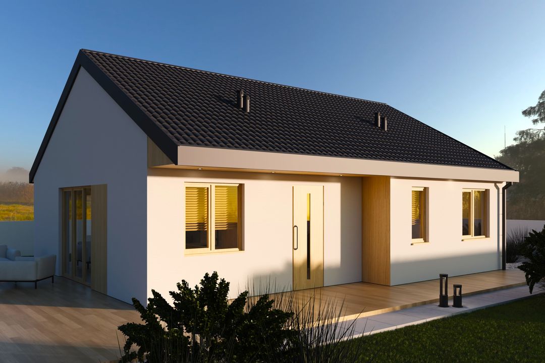 - Komfort parterowego życia – Brak schodów zapewnia wygodę użytkowania dla wszystkich domowników, niezależnie od wieku, ułatwiając codzienne funkcjonowanie i swobodne przemieszczanie się po całym domu.