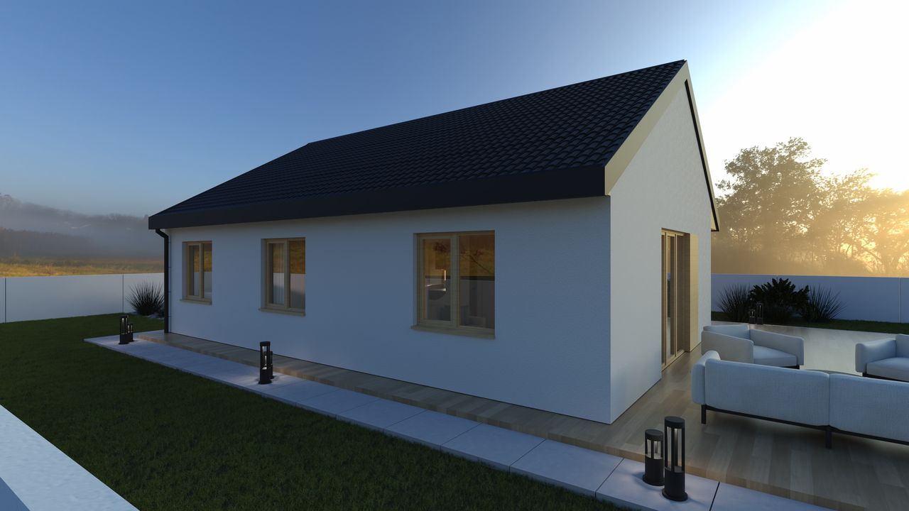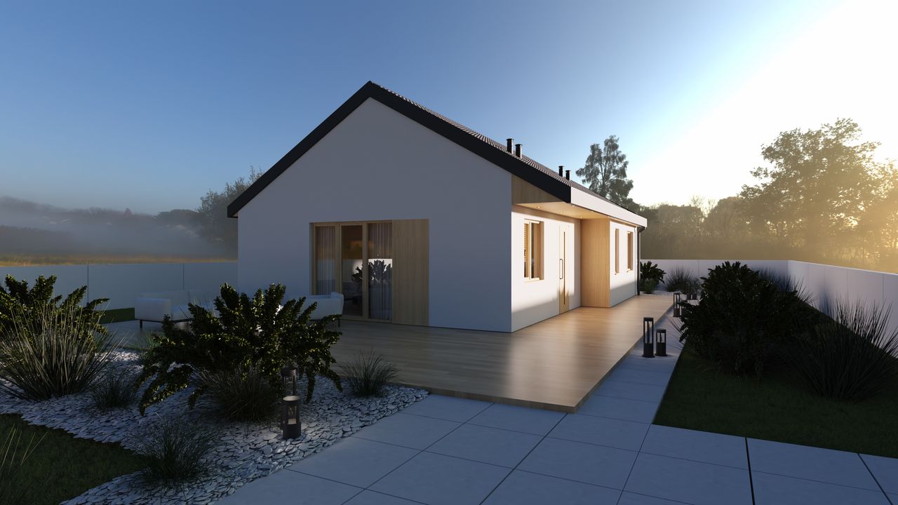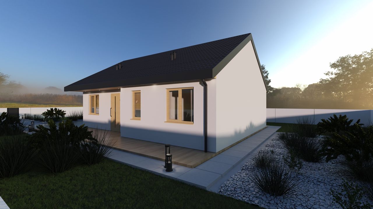 Dom keramzytowy Fiore 76 to nowoczesny, energooszczędny dom parterowy o powierzchni użytkowej 75,95 m², idealny dla rodziny 2+1 lub 2+2, poszukującej komfortowego i funkcjonalnego miejsca do życia.