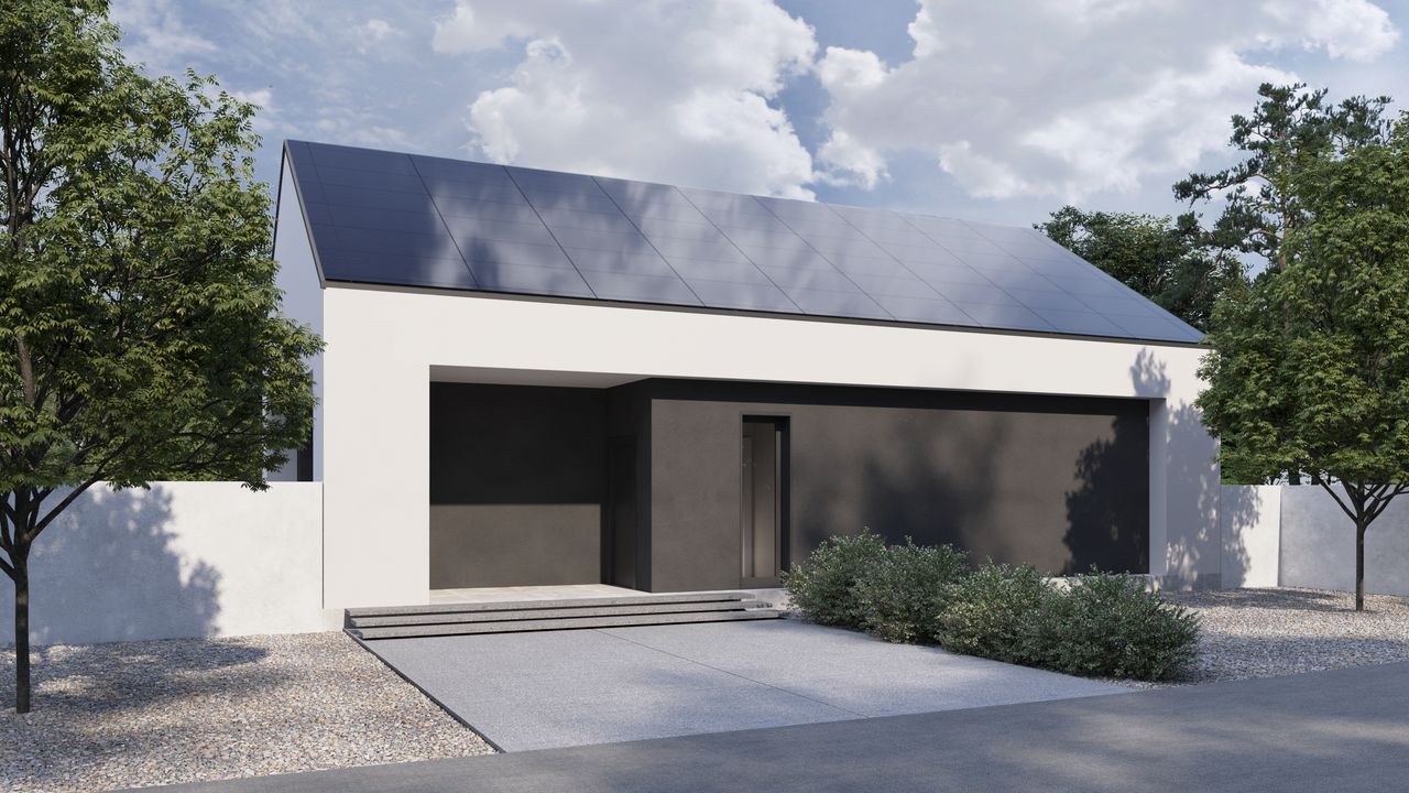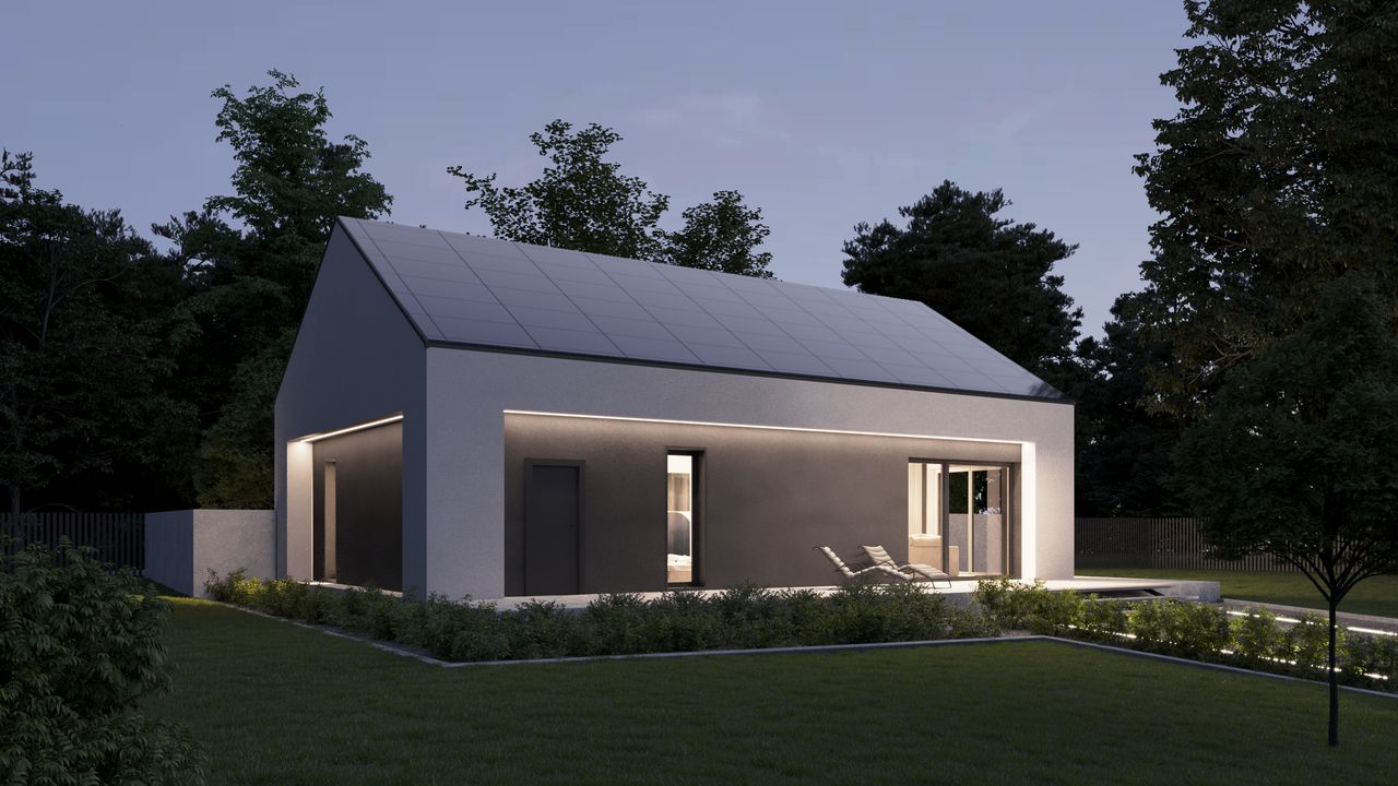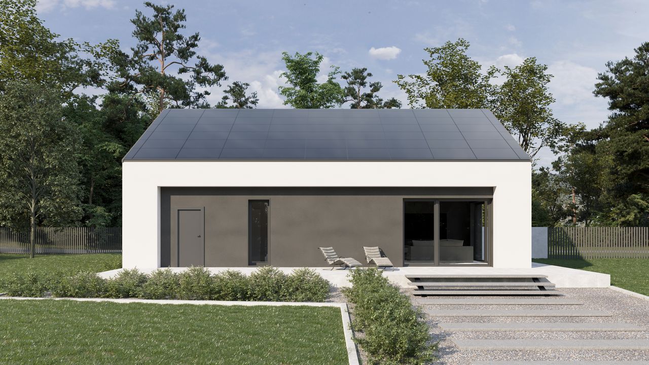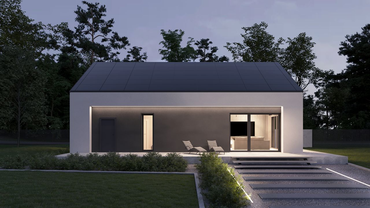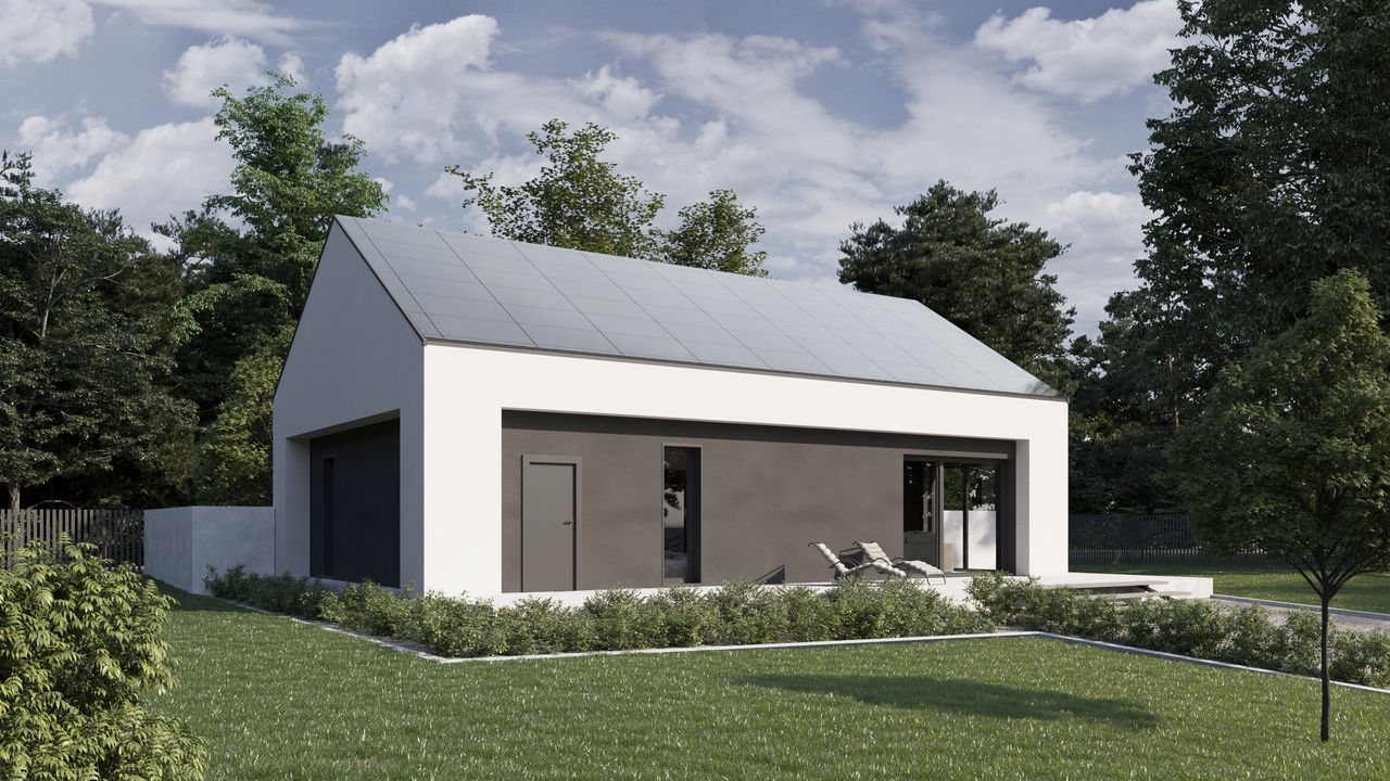 Ten nowoczesny dom parterowy o powierzchni użytkowej 76 m² został zaprojektowany z myślą o rodzinie 2+1. Oferuje komfortową przestrzeń z dwoma pokojami i jedną łazienką, wyróżniając się innowacyjną technologią prefabrykacji betonowej oraz wyjątkową efektywnością energetyczną, będąc pierwszym w Polsce zeroemisyjnym i w dużej mierze niezależnym energetycznie obiektem.