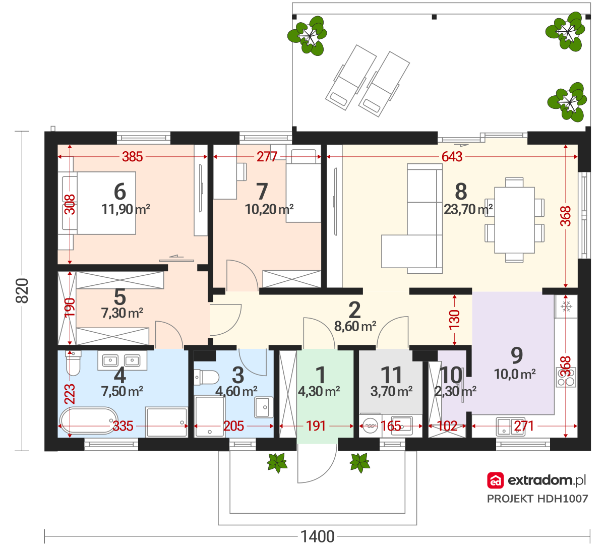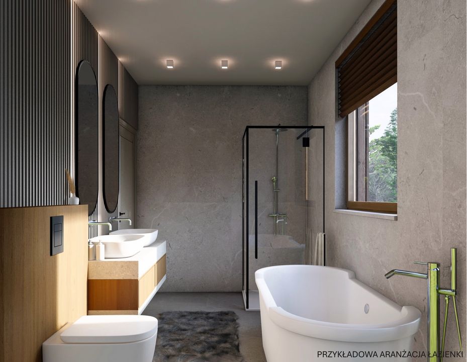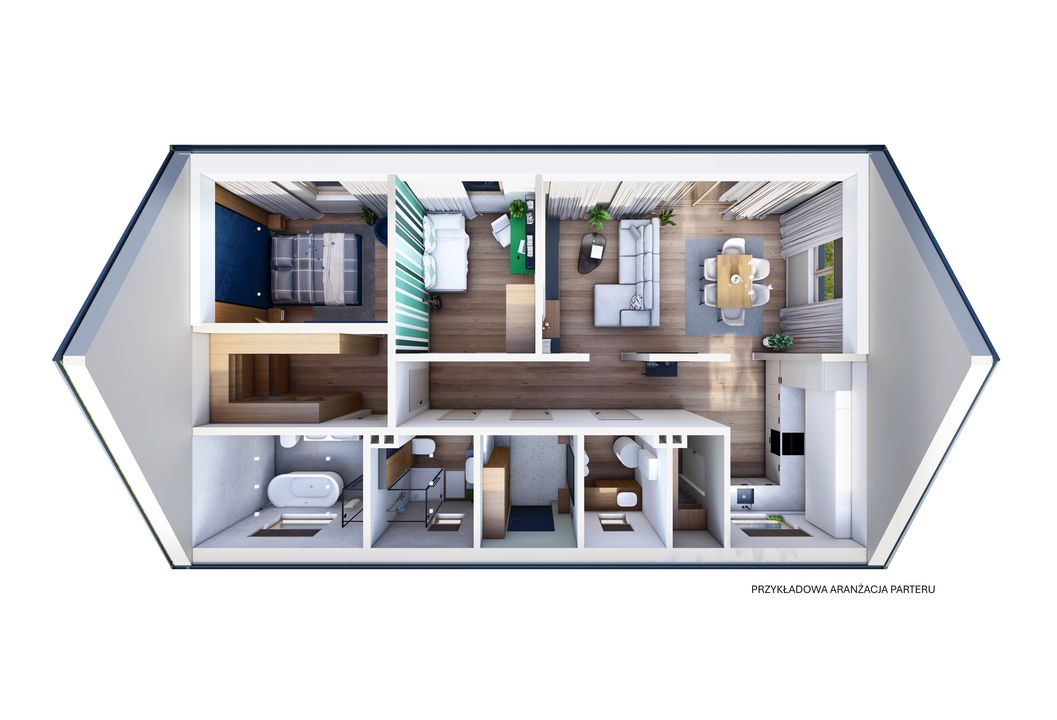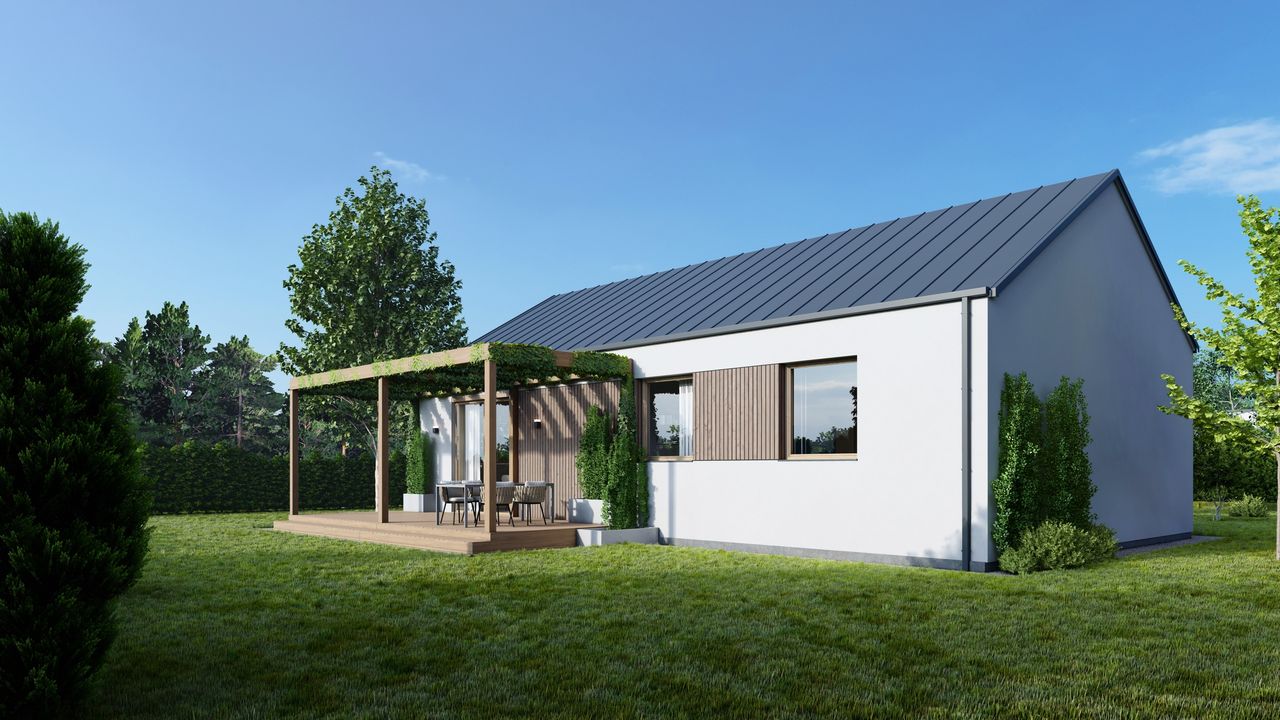- Komfort parterowego życia – Brak schodów to wygoda i bezpieczeństwo dla wszystkich domowników, a także łatwość w aranżacji przestrzeni i swobodne przemieszczanie się po całym domu.