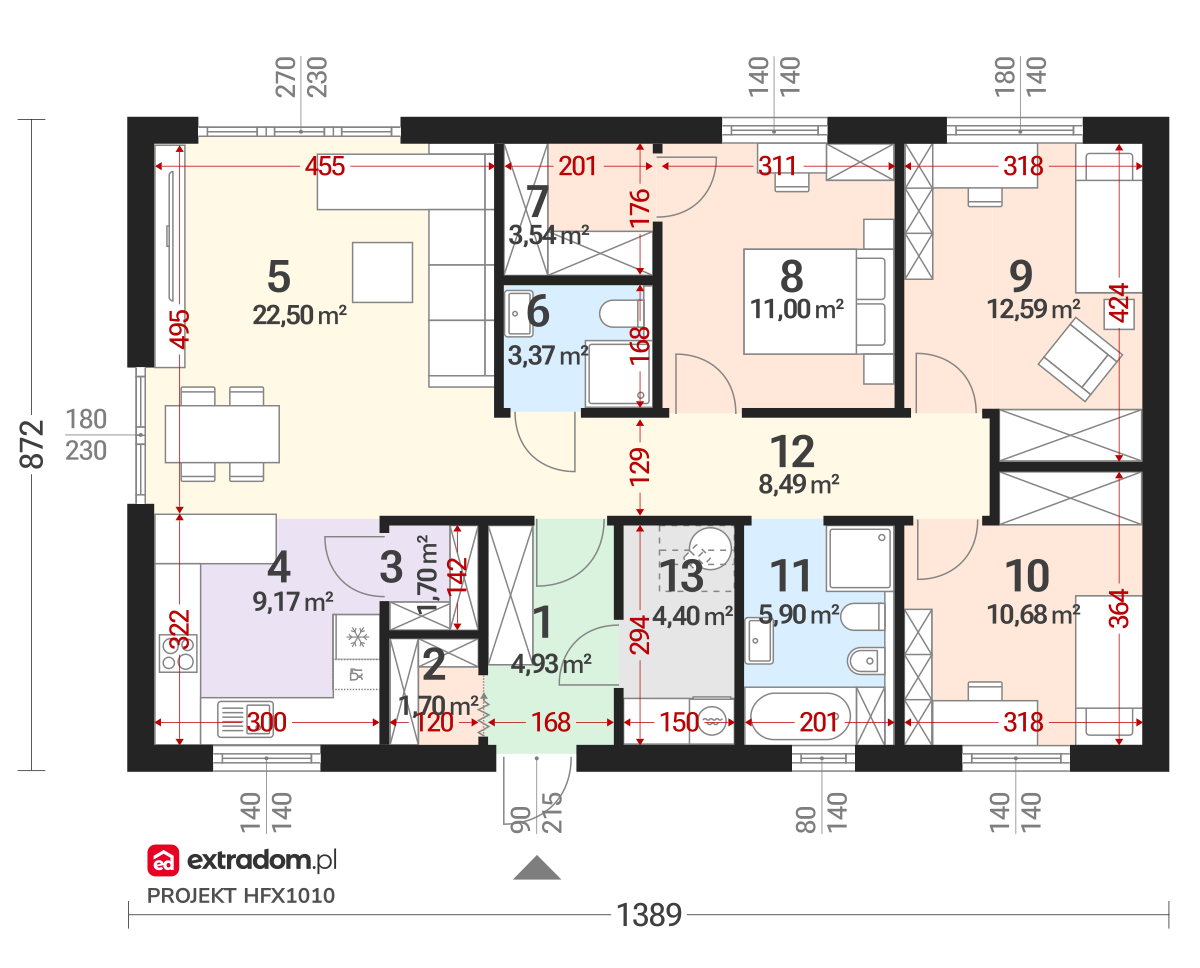 - Komfortowy układ parterowy – wszystkie funkcje mieszkalne rozmieszczone są na jednej kondygnacji, co zapewnia wygodę użytkowania bez konieczności pokonywania schodów, idealne dla rodzin z dziećmi i osób ceniących dostępność.