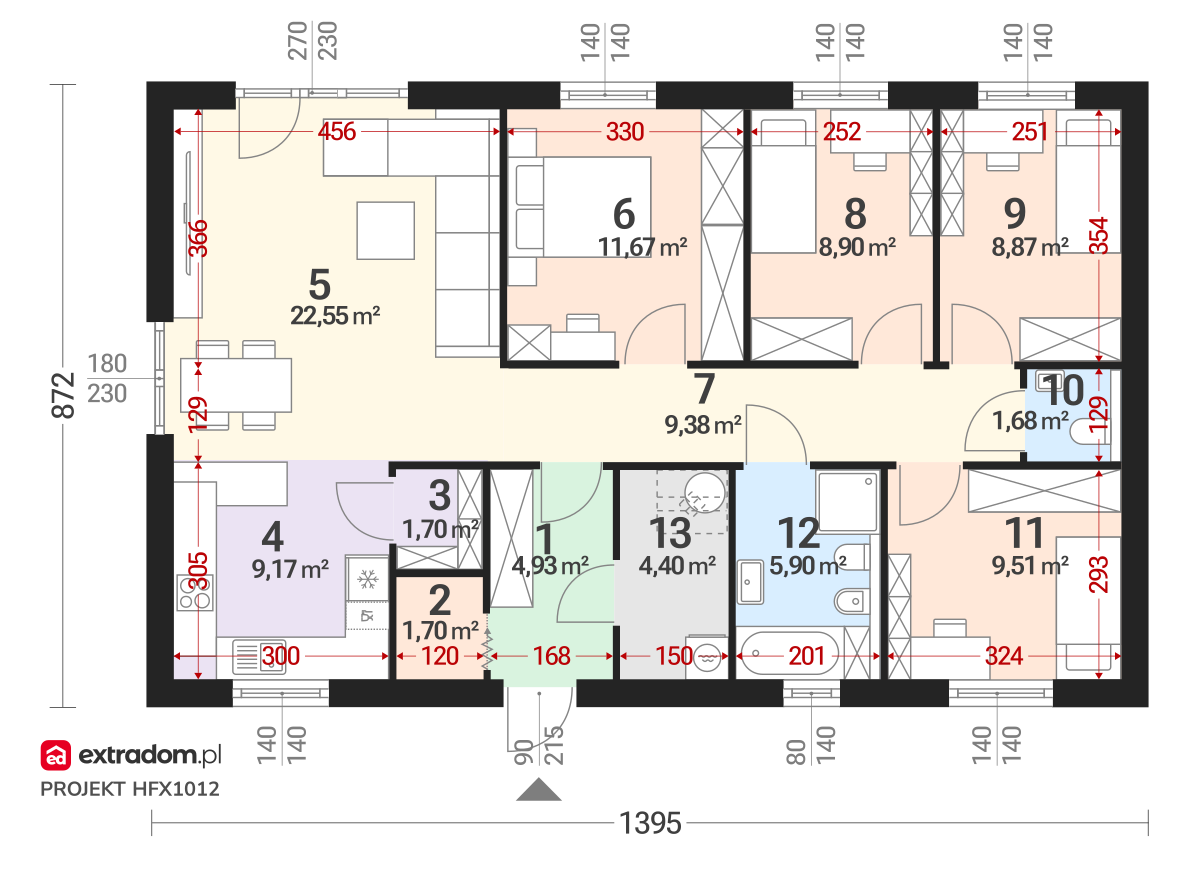 - Pokój dzienny + jadalnia – 22,55 m²
