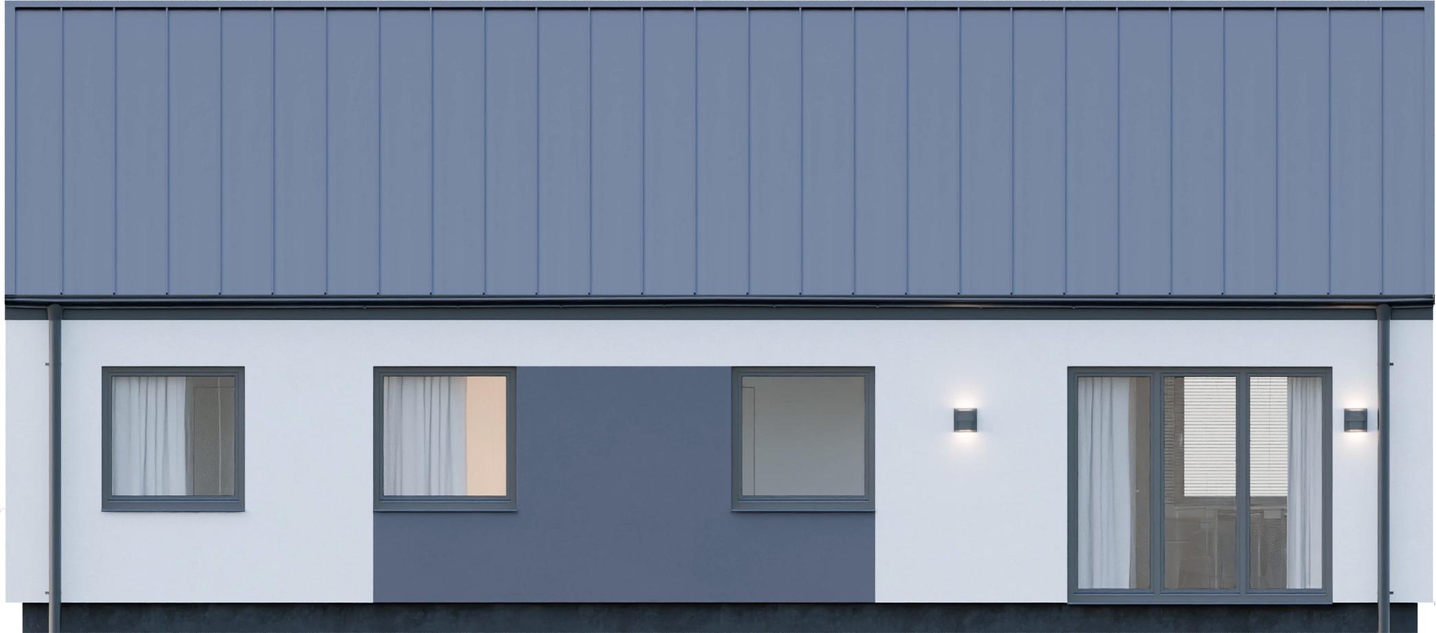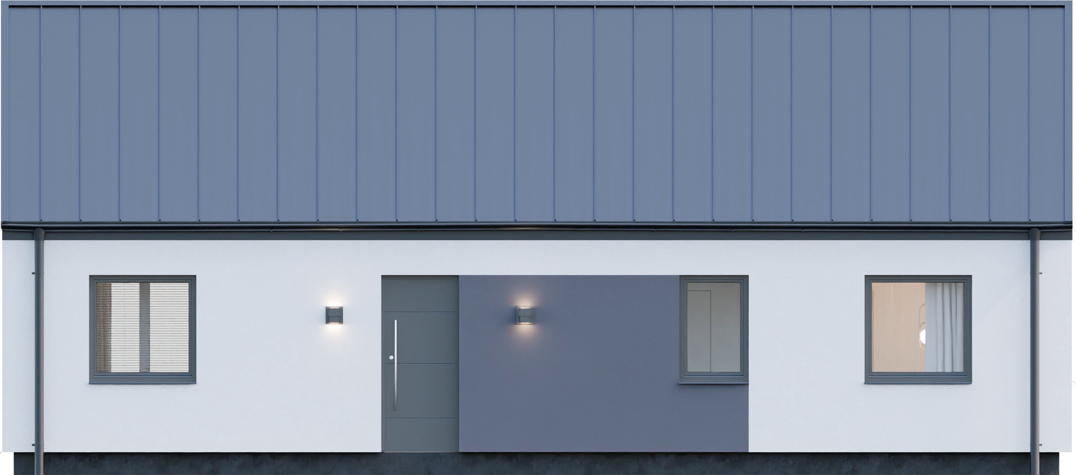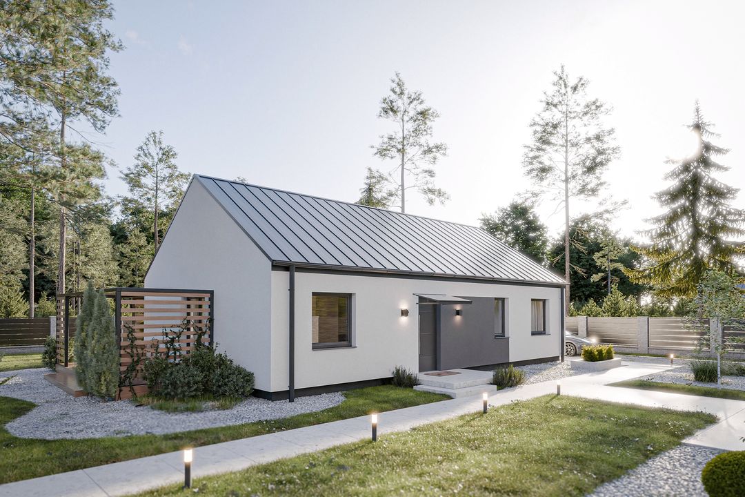 - Nowoczesna estetyka – Prosta bryła z dwuspadowym dachem i kątem nachylenia 35° wpisuje się w aktualne trendy architektoniczne, oferując elegancki i ponadczasowy wygląd, który doskonale komponuje się z otoczeniem.