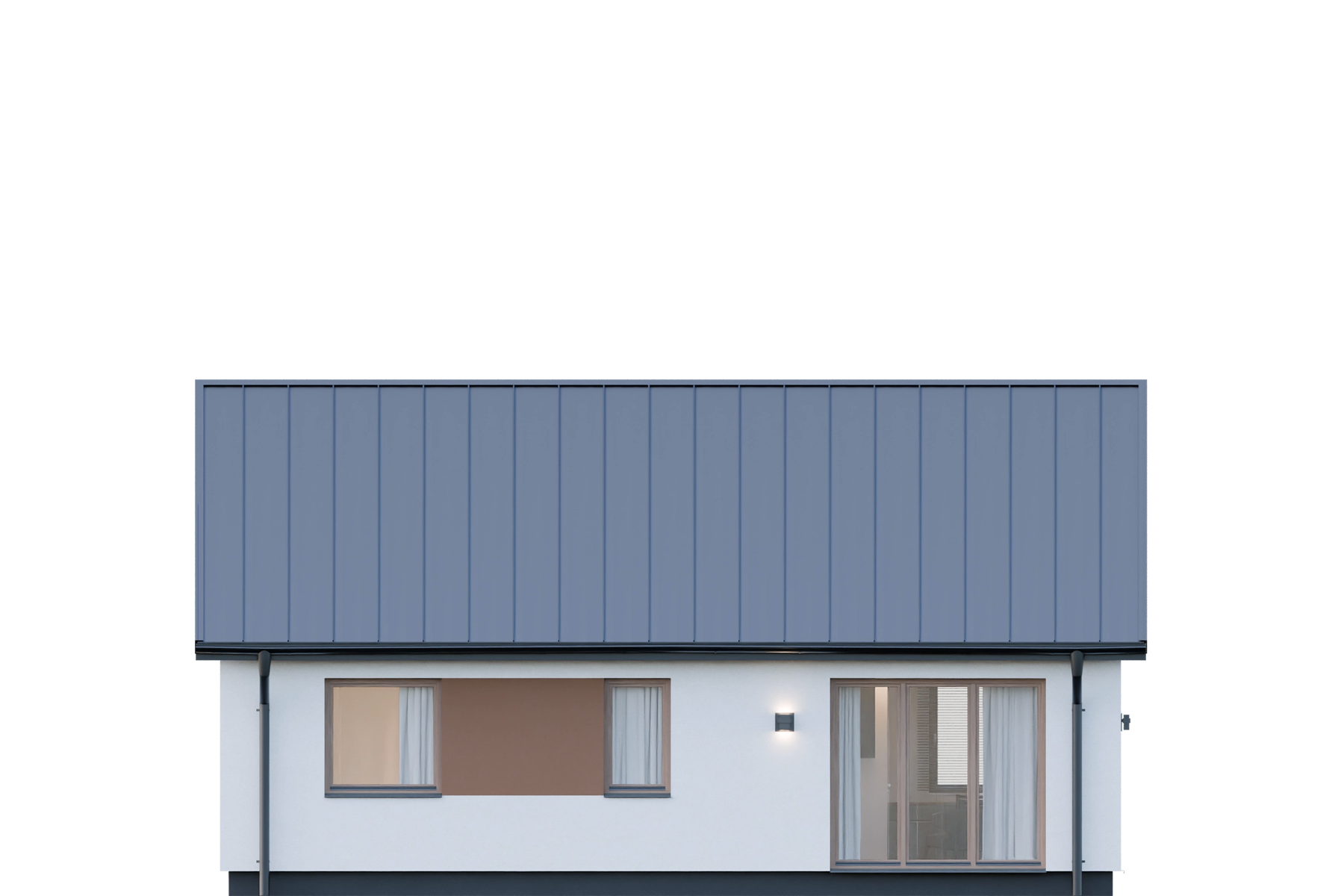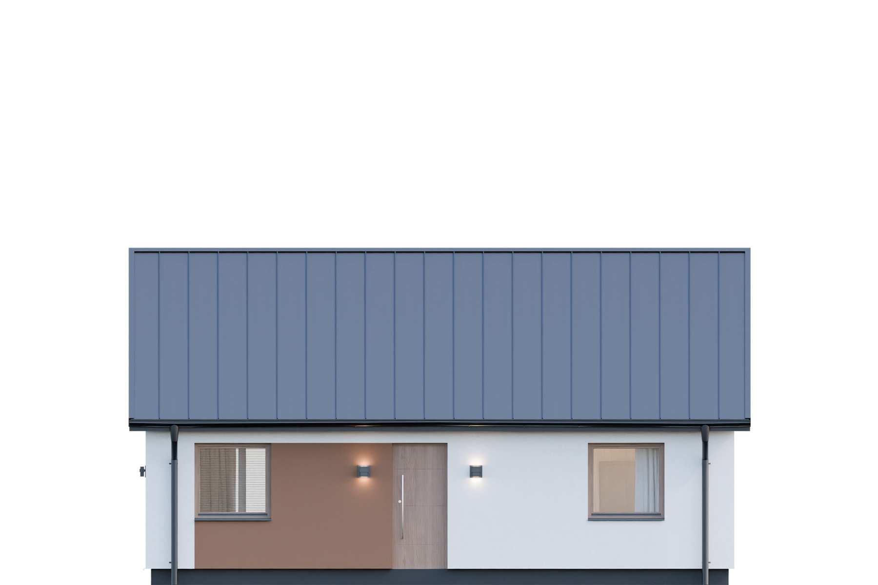 Dom prefabrykowany Parterowy 70B to projekt o klasycznej, prostej bryle, która doskonale wpisuje się w tradycyjny styl architektoniczny. Uwieńczony dwuspadowym dachem o kącie nachylenia 35°, budynek prezentuje się harmonijnie i estetycznie. Kompaktowe wymiary elewacji – 10,77 m szerokości i 8,12 m długości – sprawiają, że dom jest proporcjonalny i łatwy do zaaranżowania na działce. Prosta konstrukcja i sprawdzony kształt dachu to rozwiązania ekonomiczne w budowie i eksploatacji, a jednocześnie ponadczasowe i eleganckie.