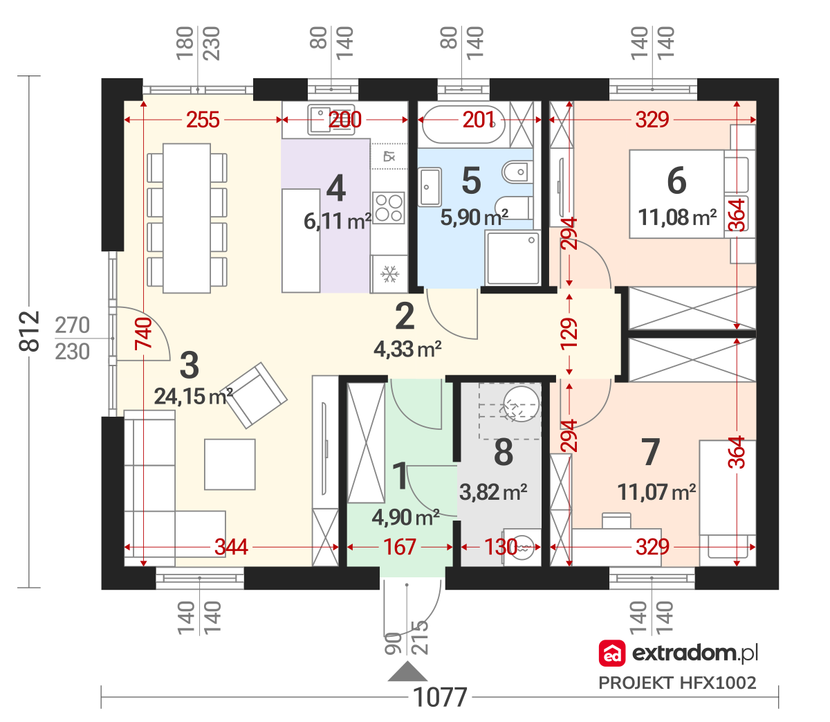 - Pokój – 11,08 m²