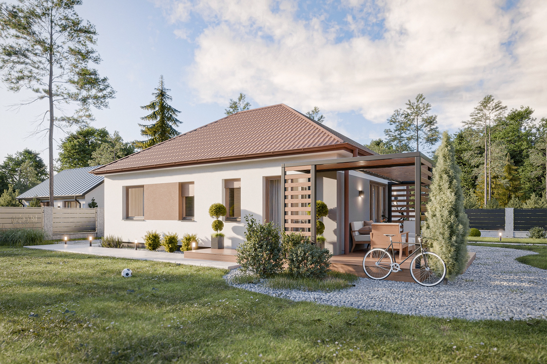 - Parterowy komfort – Cały program funkcjonalny na jednym poziomie eliminuje potrzebę wchodzenia po schodach, zapewniając wygodę i bezpieczeństwo użytkowania dla każdego pokolenia.