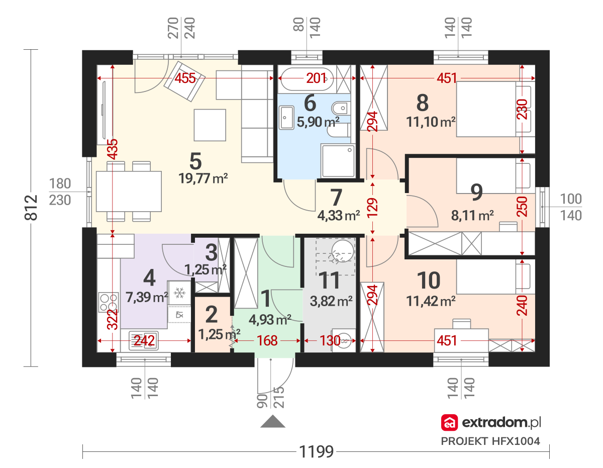 - Pokój – 11,42 m²