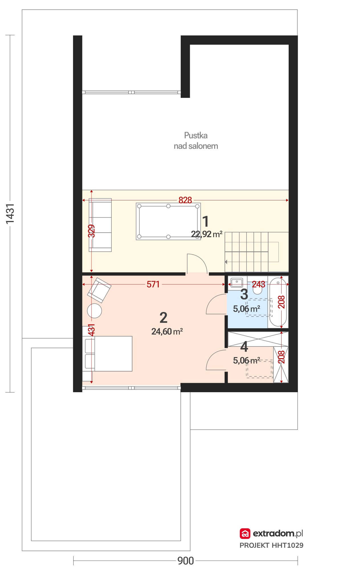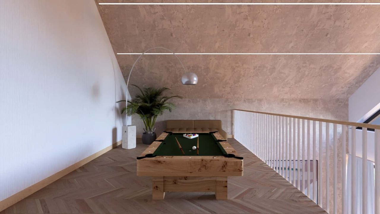 - Antresola z widokiem: Otwarta przestrzeń na poddaszu, którą można zaaranżować jako gabinet, bibliotekę lub strefę relaksu, dodaje wnętrzu lekkości i nowoczesnego charakteru.