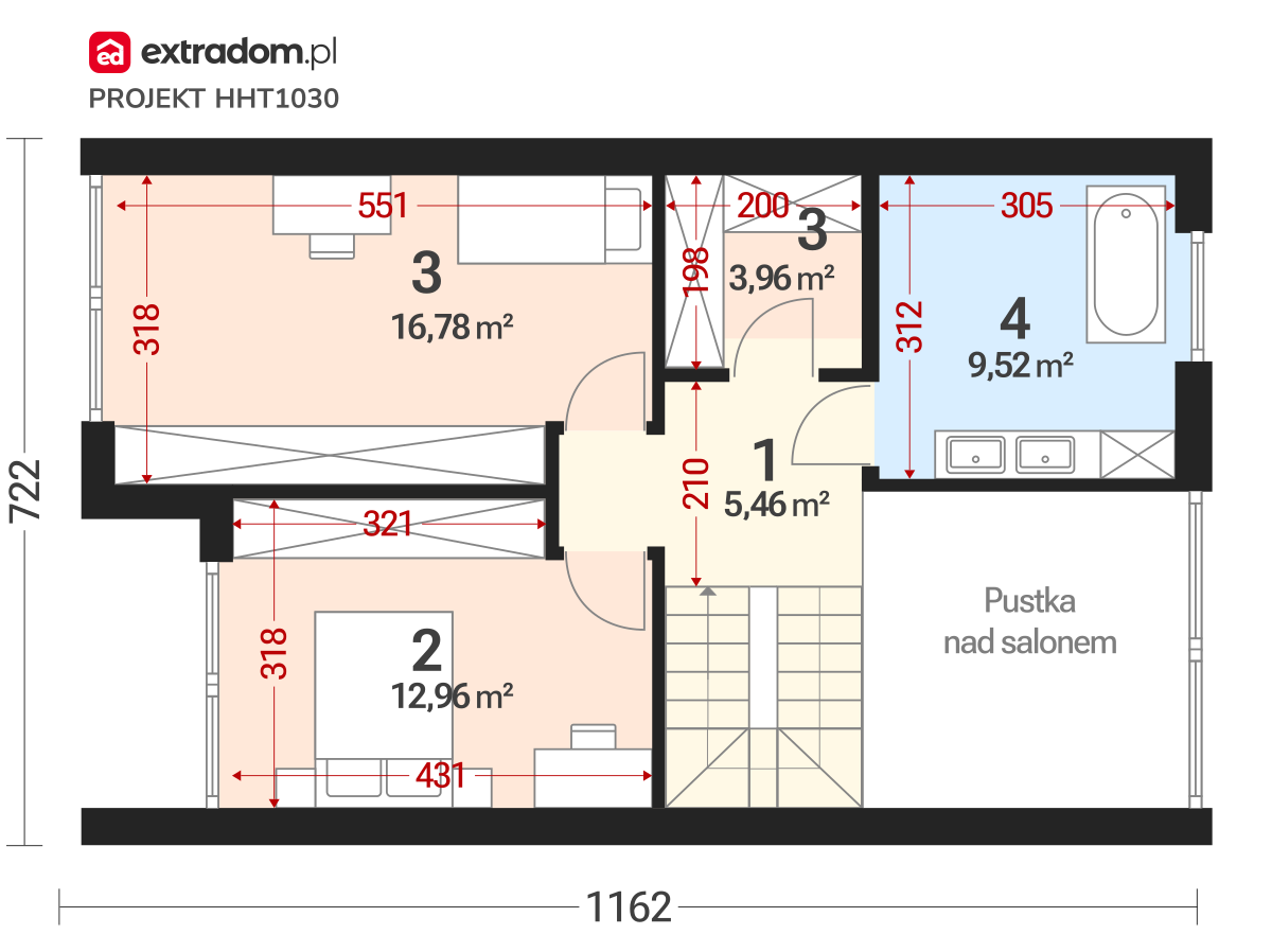 - Pokój – 12,96 m²