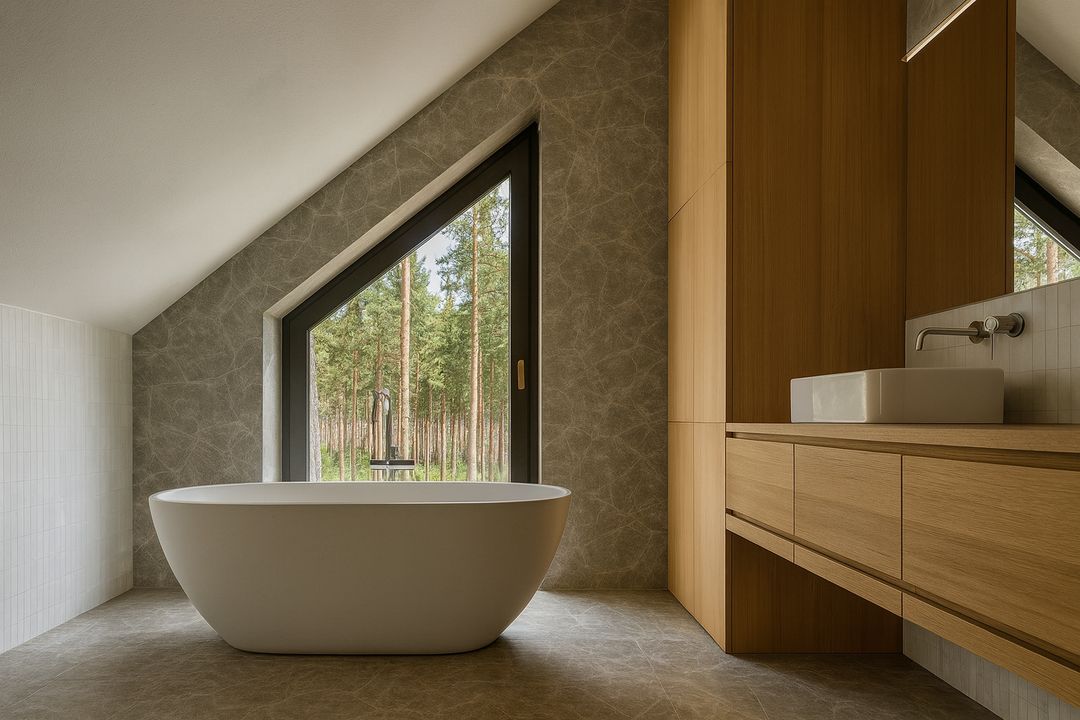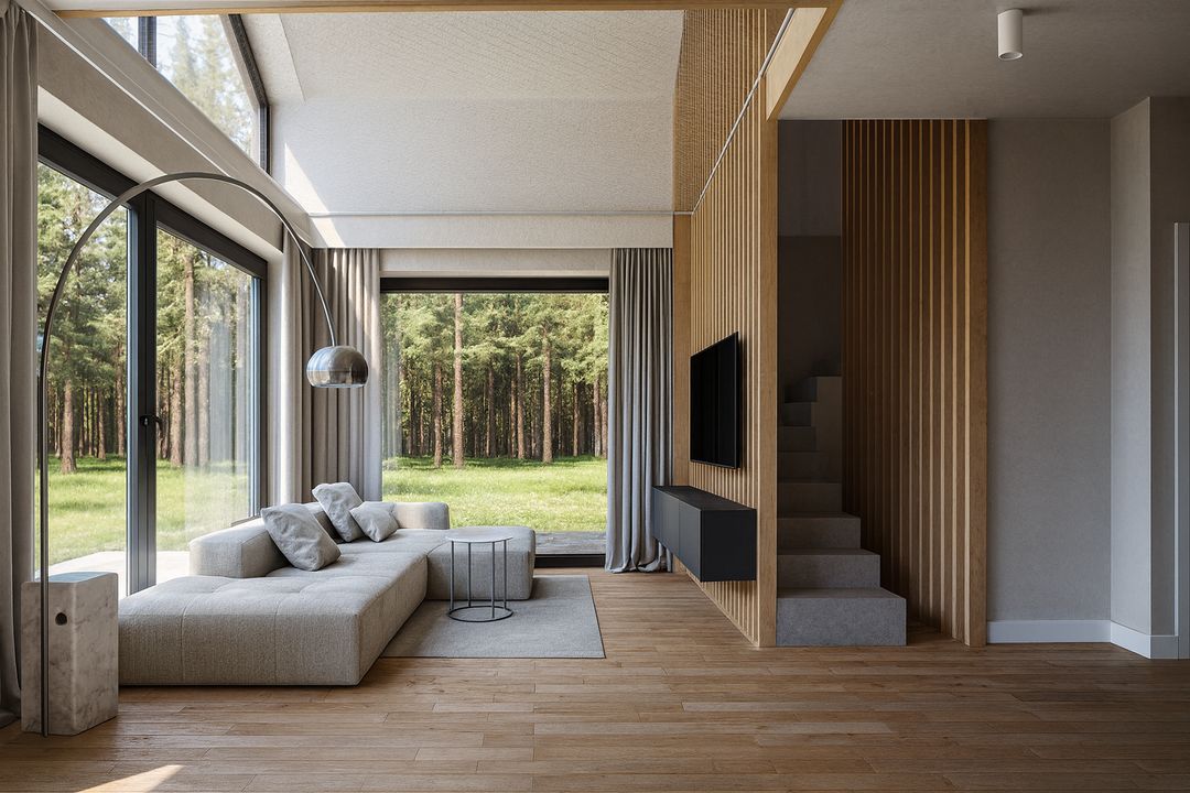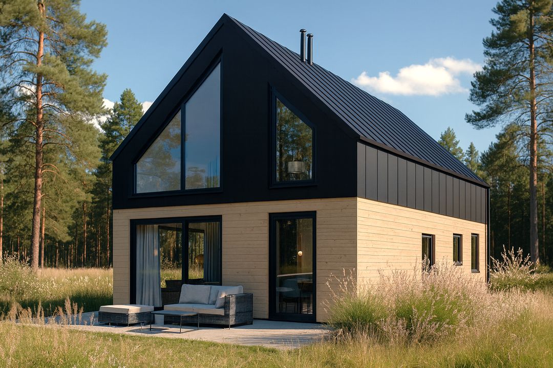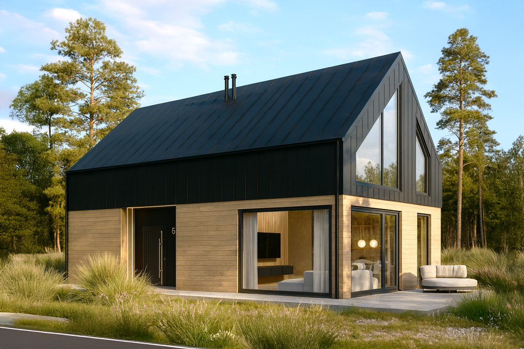 - Technologia szkieletowa – Szybka i ekologiczna budowa z drewna konstrukcyjnego C24, gwarantująca wysoką efektywność energetyczną i zdrowe środowisko mieszkalne.