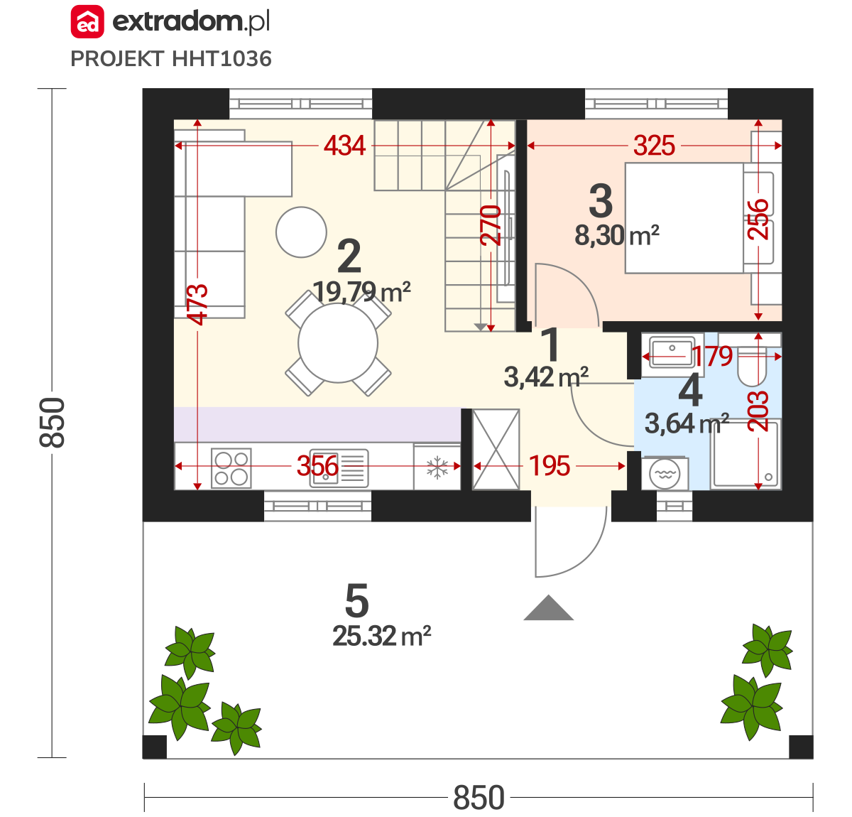 - Weranda – 25,32 m²
