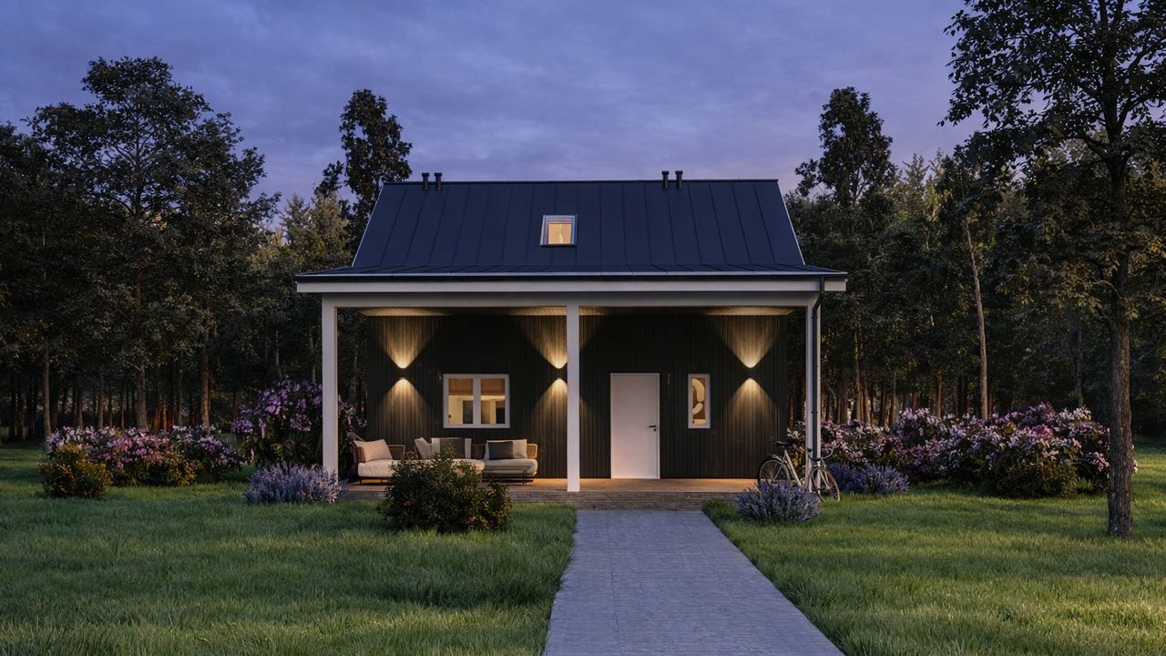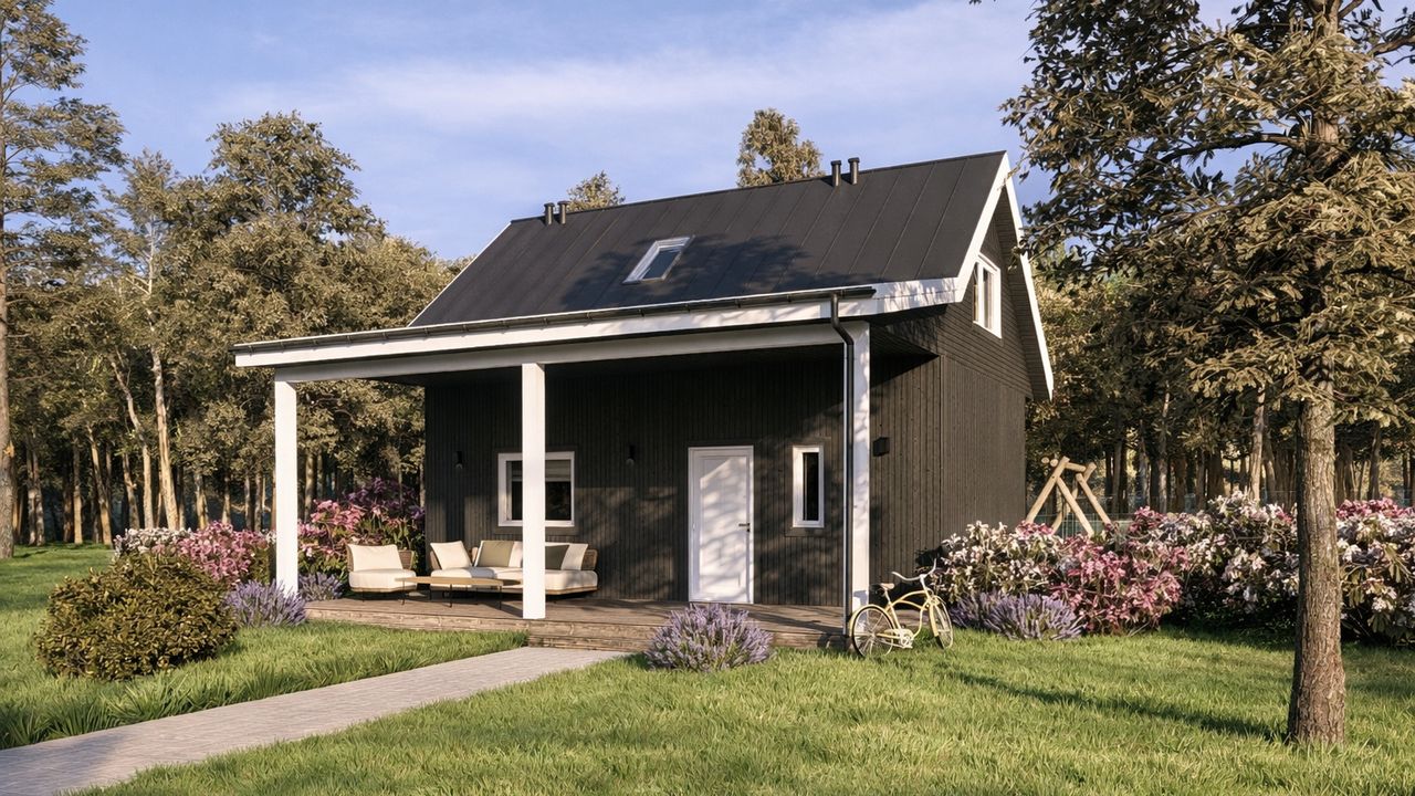 Dom szkieletowy Zen Smart 50 to kompaktowy i funkcjonalny projekt, idealny dla rodziny 2+1 lub 2+2, poszukującej nowoczesnego i ekonomicznego rozwiązania. Z powierzchnią użytkową 58,79 m² i trzema pokojami, oferuje komfortowe warunki życia w technologii szkieletu drewnianego.