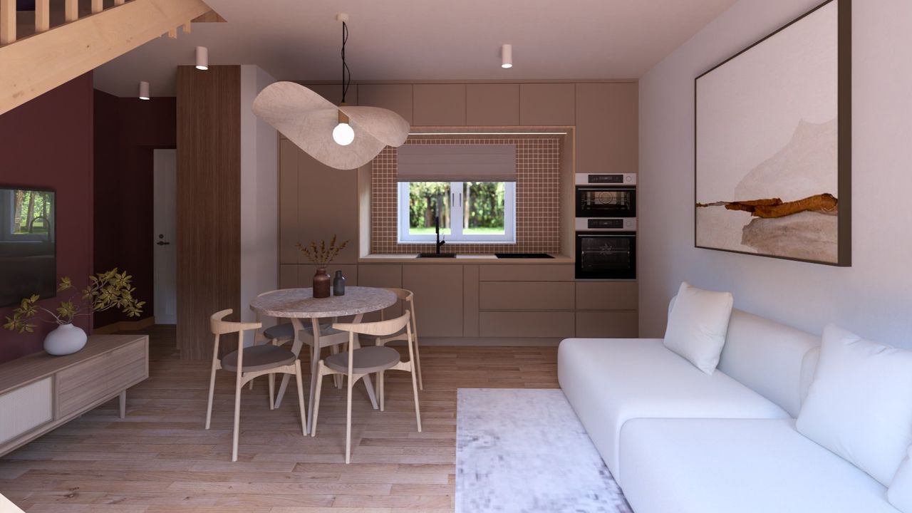 - Nowoczesna technologia szkieletowa – Budowa w technologii szkieletu drewnianego z izolacją z wełny mineralnej zapewnia szybką realizację projektu oraz doskonałe parametry termoizolacyjne, co przekłada się na niższe koszty eksploatacji i komfort przez cały rok.